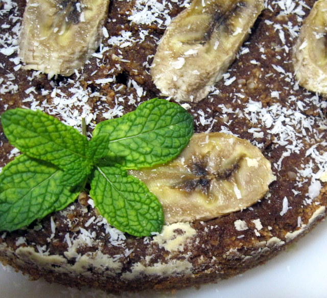 Por fim cortar em rodelas a banana restante e colocar as rodelas por cima do bolo.