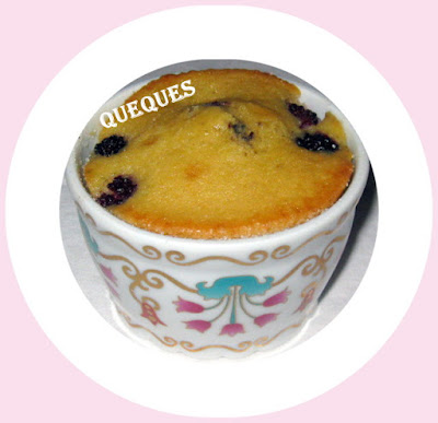 3. Distribua o preparado anterior pelas formas, disponha as amoras por cima, coloque num tabuleiro e leve ao forno durante cerca de 30 minutos ou até que fiquem cozidos. Retire do forno, desenforme e sirva polvilhados com açúcar em pó.