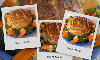 Limpe a carne de peles e gorduras e corte-a em cubos, assim como o bacon. Pique tudo na picadora. Misture a carne picada com o miolo de amêndoa, as passas, os ovos, o vinho do Porto e tempere com sal e pimenta.Envolva bem todos os ingredientes e coloque-os sobre uma folha de papel de alumínio, untada com manteiga. Molde uma bola e reserve. Corte a cenoura em tiras finas e os brócolos em raminhos, e a couve-flor. Coza tudo em água fervente temperada com sal. Deixe a massa descongelar e, depois, estenda-a sobre uma superfície polvilhada com farinha e, por cima, coloque o preparado de carne, cuidadosamente,para não desmanchar a bola. Retire o excesso de massa. Cubra a carne e feche bem as pontas. Coloque sobre um tabuleiro com as dobras para baixo. Com as sobras da massa, faça tiras compridas. Pincele a bola de massa com ovo batido e, por cima, decore com as tiras a seu gosto. Depois volte a pincelar com ovo. Ligue o forno a 180 graus. Polvilhe a massa com sementes de papoila e leve ao meio do forno 40 a 45 minutos. Retire e sirva de imediato. Como dizia a Manuela eu acopanhei com os legumes cozidos.Obrigada minha linda por partilhares esta maravilha!Esta menina tem um cantinho muito bébé !!!Aqui