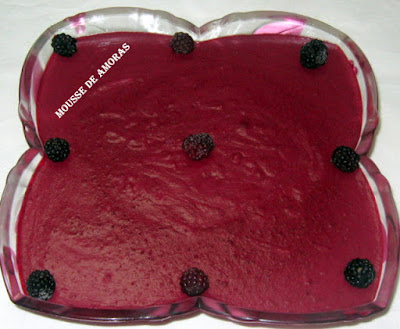4. Juntar o creme de amoras que deve estar frio e mexer bem.