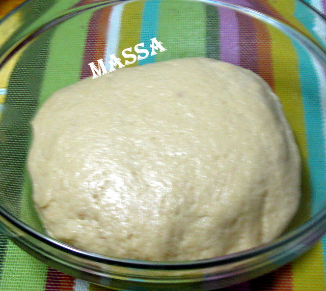 Deixe descansar, em temperatura ambiente 24°C e coberta com um plástico, até dobrar de volume, durante umas 2 horas.Vire a massa na bancada sem farinha e achate-a, retirando o ar.