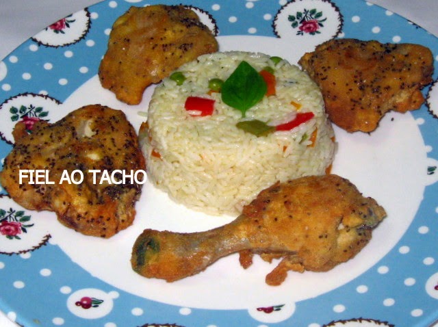 200 g de arroz 200 g de ervilhas 2 ovos 1 colher de sopa de azeite sal e pimenta q. b.
