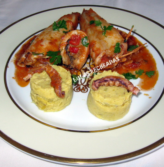Rechear as lulas com o preparado anterior sem encher muito para para que as lulas não rebentem durante a cozedura. Fechar com palitos de madeiras e reserve.