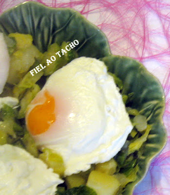 Por fim junte as batatas às couves envolva bem e sirva com os ovos escalfados. Polvilhe com um pouco de pimenta se gostar e sirva acompanhado de uma salada.