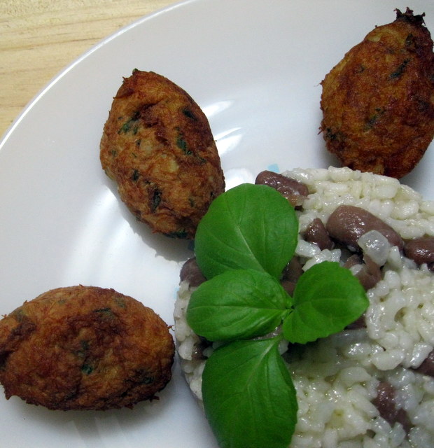 PASTÉIS DE BACALHAU COM ARROZ DE FEIJÃO
