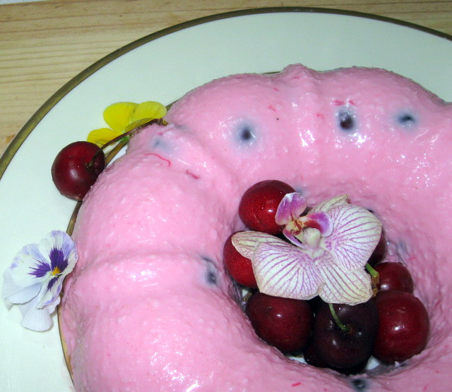 3. Lave as cerejas, enxugue-as , descaroce e corte ao meio. Verta metade do preparado para uma forma de pudim, espalhe as cerejas por cima e cubra com o restante pudim. Reserve no frigorífico até solidificar. Desenforme decore a gosto. Sirva bem fresco. É mesmo uma maravilha dos Deuses.